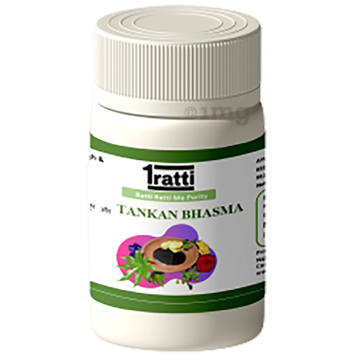 1Ratti Tankan Bhasma is an ayurvedic mineral-based dietary supplement with multiple health benefits. It can help manage breathing problems, wheezing and bronchitis and can also help deal with abdominal pain, dysmenorrhea, dandruff and bad breath.