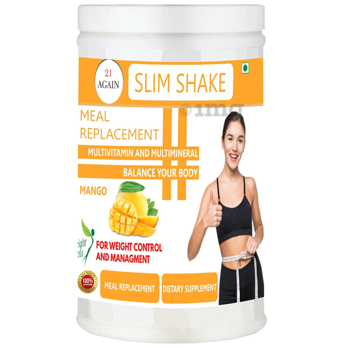21 Again Powder Slim Shake Meal Replacement is a nutritious meal replacement shake. It helps people struggling with weight achieve their weight management objectives. It offers the complete nutrition of a well-balanced meal with low calories. It contains proteins, fibre, and 27 essential vitamins and minerals.