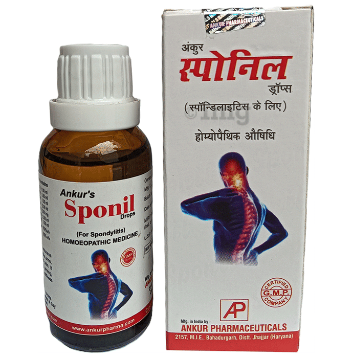 Ankur Sponil Oral Drops is a homoeopathic formulation designed to support the body. The blend of ingredients such as Colocynthis Vulgaris, Ruta Graveolens, and Hypericum Perforatum may assist in managing symptoms like muscle twitching, jerking, cramps, and stiffness. With a 65% v/v alcohol content, this homoeopathic medicine is intended to be used under the guidance of a physician.