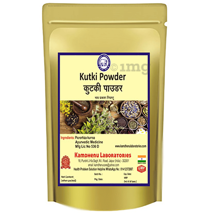 Kamdhenu Laboratories Kutki Powder is a herbal powder traditionally used to support general wellness. It may support digestion and antioxidant levels. It is recommended to consult a physician before use.