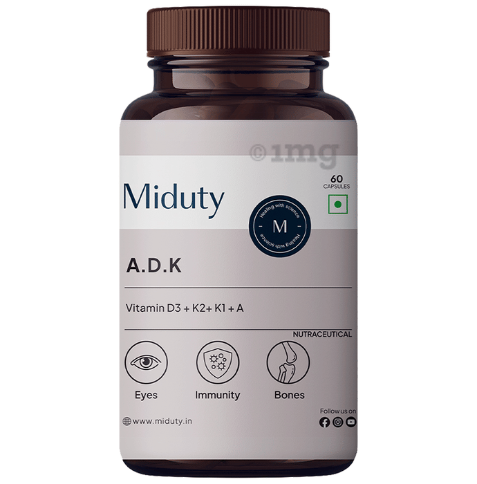 Miduty ADK Vitamin+K2+A Capsule | Eyes, Immunity, Weak Bones, Arthritis & Fat soluble Capsule