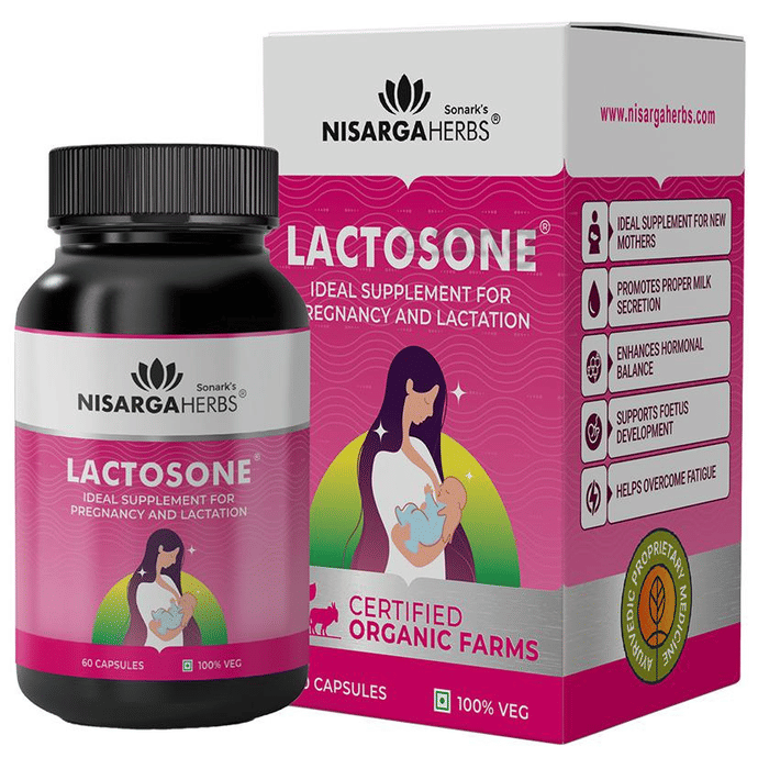 Nisarga Herbs Lactosone Veggie Caps helps in Lactation, secretion and yielding of milk by females after giving birth. The milk is produced by the mammary glands, which are contained within the breasts. mammary growth begins during pregnancy under the influence of ovarian and placental hormones, and some milk is formed, copious milk secretion sets in only after delivery. Breastfeeding is particularly advantageous because of the nutritional, immunologic, and psychological benefits.