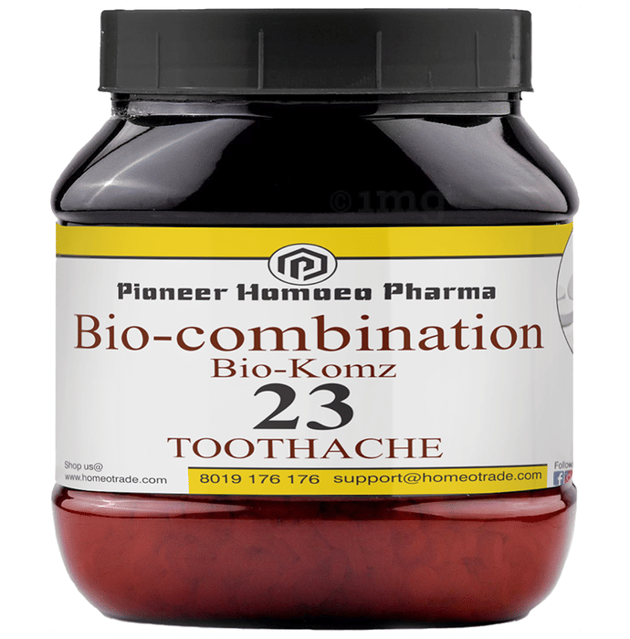 Pioneer Pharma Bio-Komz 23 Toothache Tablet may help manage the tooth's pain and swelling. It might assist in strengthening the gums to prevent unnatural tooth loosening. It promotes healthy oral hygiene.