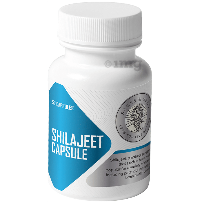 Sages & Seas Shilajeet Capsule Shilajit is a mineral-based extract which is pale-brown to blackish-brown in colour and composed of rock humus, rock minerals and organic substances. Shilajit translates from Sanskrit, means Conqueror of mountains and destroyer of weaknesses.