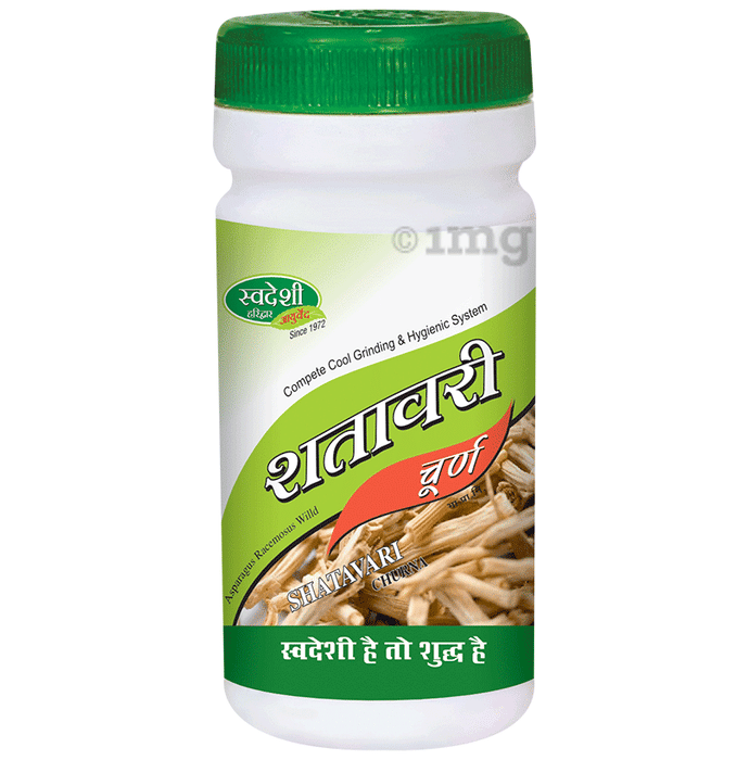 Swadeshi Satavari Churna is described as a tonic used traditionally, supporting general reproductive health and nourishment.