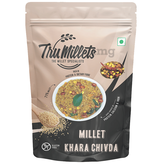 Tru Millets Khara Chivda made with kodo millet (kodra/varagu/arikelu/hark/varigu) which can offer proven nutritional and health benefits. It is a good source of protein, calcium and iron. This healthy snack is roasted and not deep-fried.
