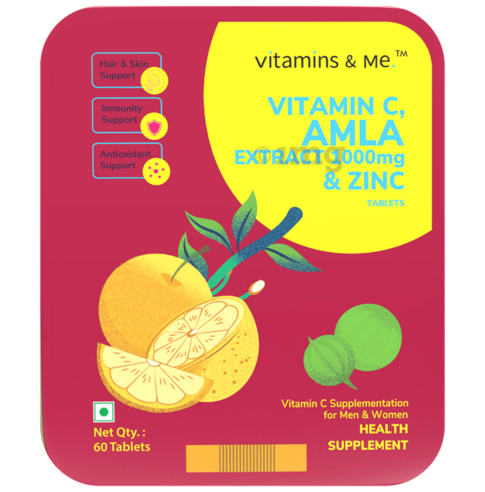Information about Vitamins & Me Vitamin C, Amla Extract 1000mg & Zinc Tablet