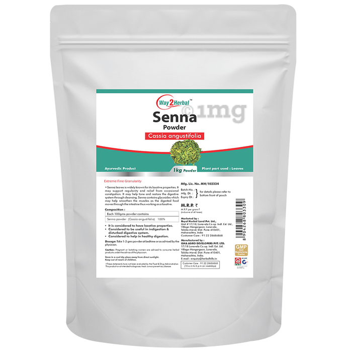 Way2Herbal Senna Powder Senna leaves, known as Cassia angustifolia, are synergistically processed with highly advanced technology. Way2Herbal company is Indias largest online-selling brand in pure herbal powders. This product is halal certified and the ingredients in this product are natural and vegetarian. This senna powder can be used for ayurvedic purposes. Senna leaves powder may support digestion and clear bowels. It is an ayurvedic remedy specially formulated to contribute to a healthy bowel movement. It helps in relieving stomach discomfort like occasional constipation and abdomen aches. This powder is made from dried senna leaves and may support digestive comfort. It also helps to clean the intestine and supports the evacuation of toxins from the body. Senna may be useful in supporting muscle strength.