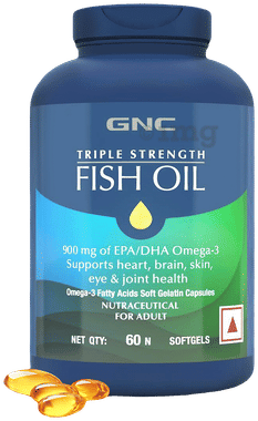 GNC Triple Strength Fish Oil Soft Gelatin Capsules with Omega 3 Fatty Acids | For Heart, Brain, Skin, Eye & Joint Health