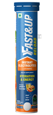 Fast&Up Reload with Instant Electrolytes & Vitamins for Hydration & Energy | Flavour Effervescent Tablet Peach Ice Tea