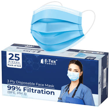 E-Tex Kawach 99% Filtration 3 Ply Disposable Face Mask Free Size Blue