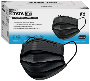 3 Ply Surgical Mask with Meltblown Filter and Nose Pin 50 Mask Black | by Tata 1mg Black