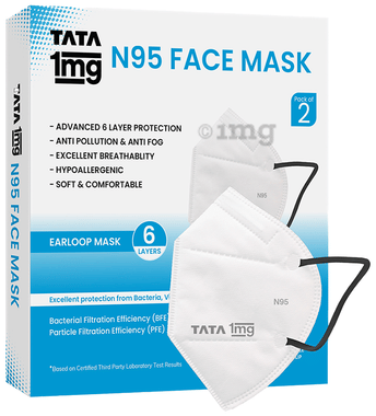 N95-Style Protective Face Mask | 6-Layer Filtration | Soft Ear Loop Design | by Tata 1mg