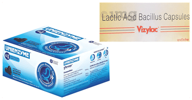 Combo of Pack Unienzyme Tablet (15) & Vizylac Lactic Acid Bacillus for Gut Health | Capsule (15)