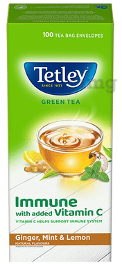 Tetley Green Tea Immune with Added Vitamin C Tea Bag (1.4gm Each) | Flavour Lemon & Honey