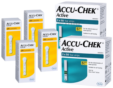 Accu-Chek Combo Pack of 2 Pack Active Test Strip (100 Each) & 4 Pack Softclix Lancet (25 Each)
