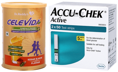 Combo Pack of Celevida Kesar Elaichi Nutrition Drink 400gm & Accu-Chek Active 100 Test Strip