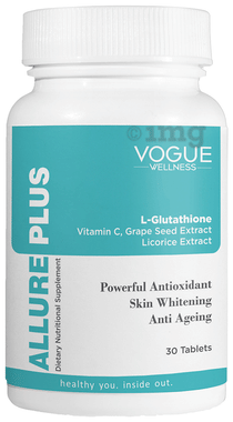 Vogue Wellness Allure Plus Glutathione Tablets Helps Glowing Skin Radiant Skin Clear Skin Supplement