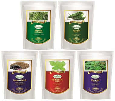 Bioneeva Herbs Combo Pack of Neem Leaf, Karela, Gurmar, Baelpatra & Jamun Guthli Seed Powder (100gm Each)