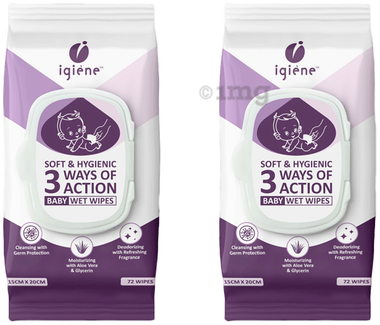 Igiene Soft & Hygienic 3 Ways of Action Baby Wet Wipes (72 Each) 15cm x 20cm