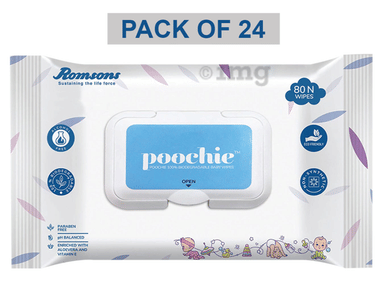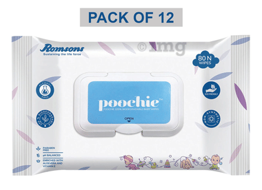 Dignity Poochie 100% Biodegradable Baby Wipes | Enriched with Aloe Vera and Vitamin E (80 Each)