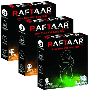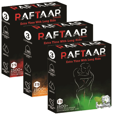 Raftaar Combo Pack of Condom Strawberry, Coolmint, Chocolate (3 Each)