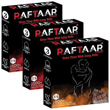 Raftaar Combo Pack of Condom 2 Pcs Chocolate, 1 Pc Strawberry (3 Each)