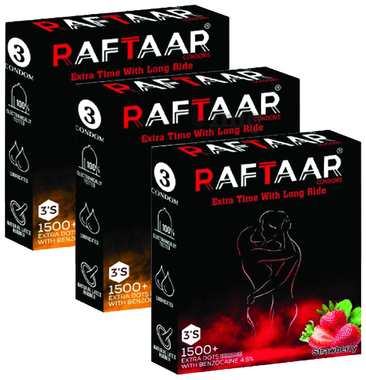Raftaar Combo Pack of Condom 2 Pcs Strawberry, 1 Pc Chocolate (3 Each)