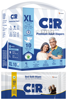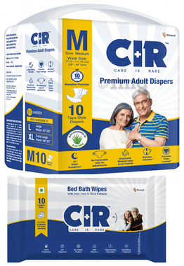 Combo Pack of CIR Premium Adult Unisex Diaper with Aloe Vera Medium (10) & Bed bath Wipes (10)