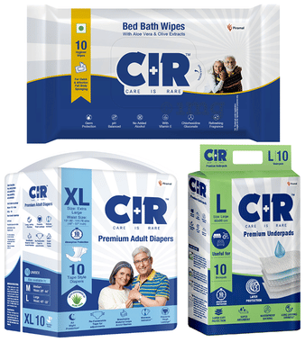 Combo Pack of CIR Premium Adult Unisex Diaper with Aloe Vera XL (10) & Bed bath Wipe (10) & Premium Underpad Large (10)