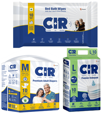 Combo Pack of CIR Premium Adult Unisex Diaper with Aloe Vera Medium (10) & Bed bath Wipe (10) & Premium Underpad Large (10)