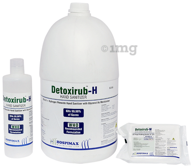 Detoxirub Combo Pack of Detoxirub-H Hand Sanitizer 5Ltr, 500ml & Detoxirub-W Rapid Disinfection 30 Wet Wipes