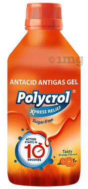 Polycrol Xpress Relief Sugar-Free Antacid Antigas Gel | Action in 10 seconds | Xpress Relief | Sugar-Free | Flavour Orange