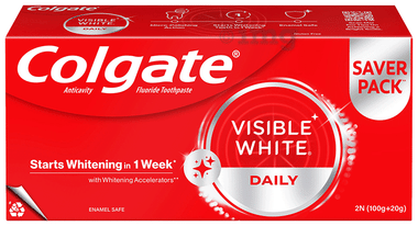 Colgate Visible White Toothpaste | Teeth Whitening Starts in 1 Week | (120gm Each)