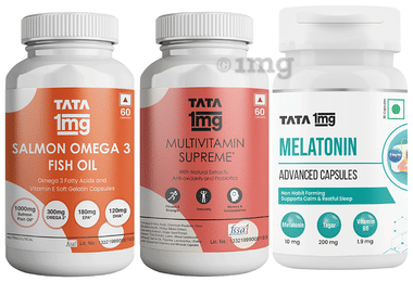 Combo Pack of Tata 1mg Multivitamin Supreme Capsule (60),Melatonin 10mg Advance Capsule (30) & Salmon Omega 3 Fish Oil Capsule (60)