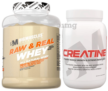 Muscle Building Combo of Big Muscles Creatine 300gm and Big Muscles Raw & Real Whey Protein Powder 2Kg