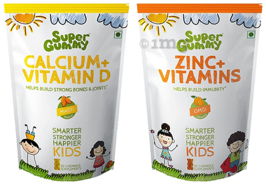 Super Gummy Combo Pack of Calcium+Vitamin D Gummies Masti Mango & Zinc+Vitamins Gummies OMG Orange (30 Each)