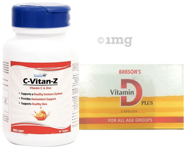 Immunity Care Combo of HealthVit C-Vitan-Z Vitamin C & Zinc 60 Tablet and Bakson's Vitamin D Plus 50 Capsule