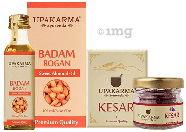 Upakarma Ayurveda Combo Pack of Badam Rogan Sweet Almond Oil 100ml & Kesar 1gm