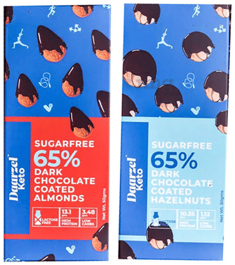 Daarzel Keto Combo Pack of 65% Dark Chocolate Coated Almonds & 65% Dark Chocolate Coated Hazelnuts (50gm Each)