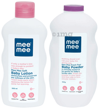 Mee Mee Combo Pack of Soft Baby Lotion 500ml and Fresh Feel Baby Powder 500gm