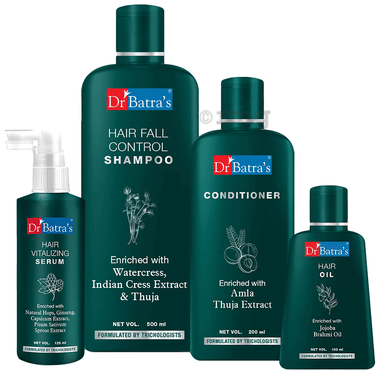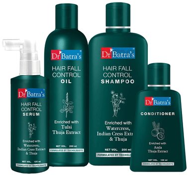 Dr Batra's Combo Pack of Hair Fall Control Serum 125ml, Conditioner 100ml, Hair Fall Control Oil 200ml and Hair Fall Control Shampoo 200ml