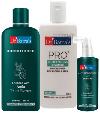 Dr Batra's Combo Pack of Anti-Dandruff Hair Serum 125ml, Conditioner 200ml and Pro+ Intense Volume Shampoo 200ml