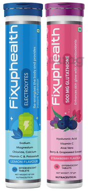 Combo Pack of Fixuphealth Electrolytes Effervescent Tablet Lemon (20) & Fixuphealth Glutathione 500mg Effervescent Tablet Strawberry (15)