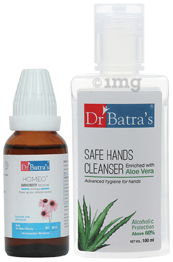 Dr Batra's Combo Pack of Homeo+ Immunity Medicine Oral Drops 30ml and Safe Hands Cleanser 100ml