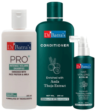 Dr Batra's Combo Pack of Pro+ Intense Volume Shampoo 200ml, Hair Vitalizing Serum 125ml and Conditioner 200ml