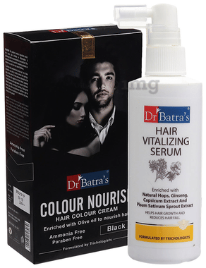 Dr Batra's Combo Pack of Hair Vitalizing Serum 125ml and Colour Nourish Hair Colour Cream 120gm Black