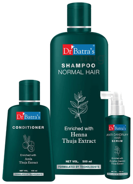 Dr Batra's Combo Pack of Anti-Dandruff Hair Serum 125ml, Conditioner 100ml and Normal Hair Shampoo 500ml
