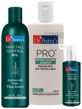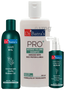 Dr Batra's Combo Pack of Hair Fall Control Serum 125ml, Hair Oil 200ml and Pro+ Intense Volume Shampoo 200ml