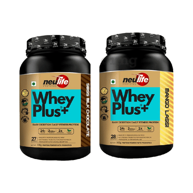 Combo Pack of Neulife Whey Plus+ Protein Powder with Probiotics Mango Lassi & Neulife Whey Plus+ Protein Powder with Probiotics Swiss Milk Chocolate (900gm Each)